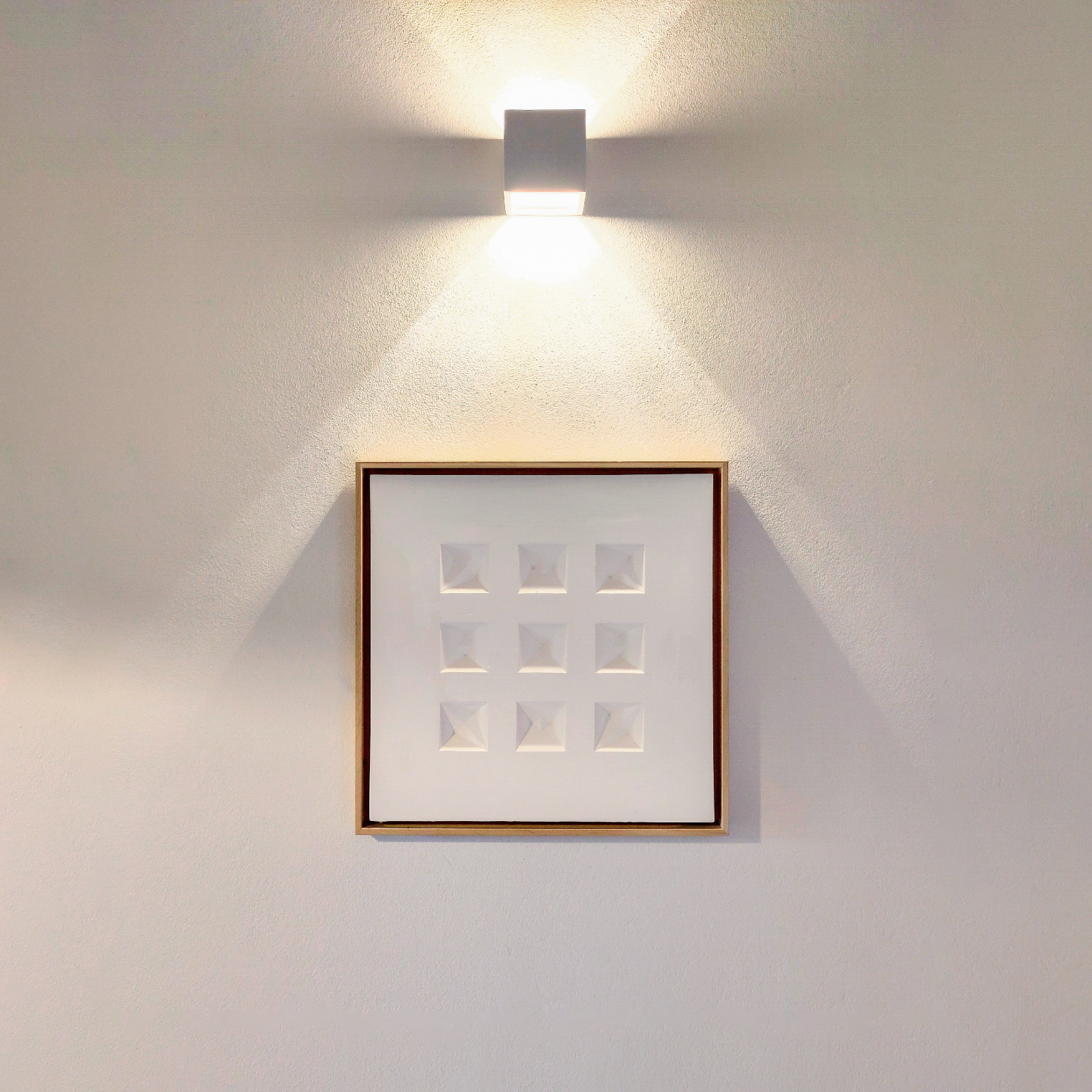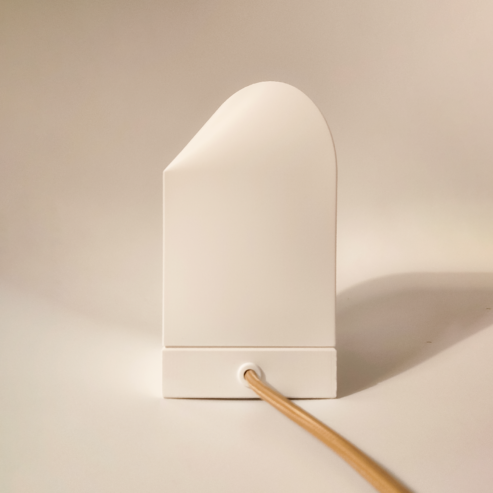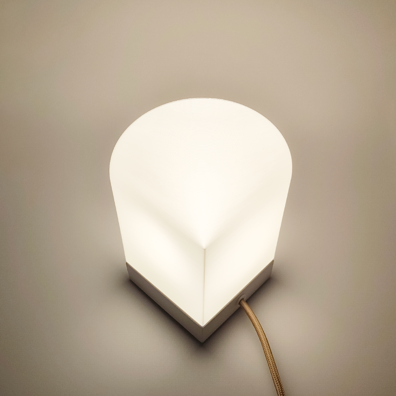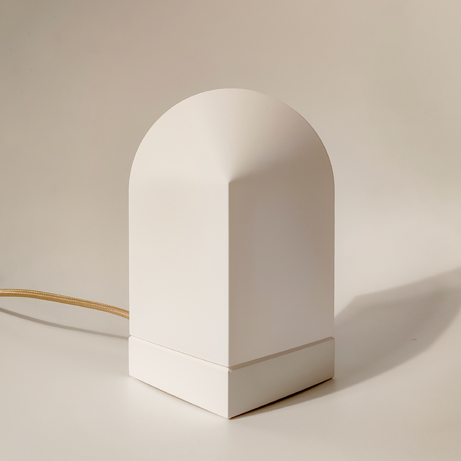 White concrete base with 3D-printed matte white PLA shade. (10x10x20cm)